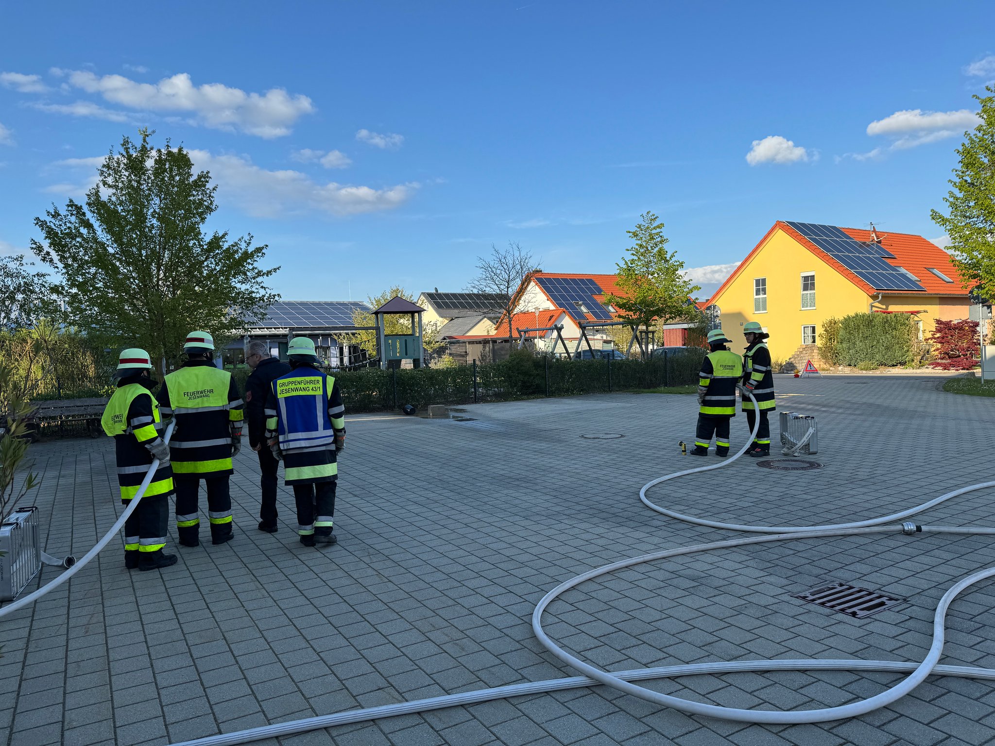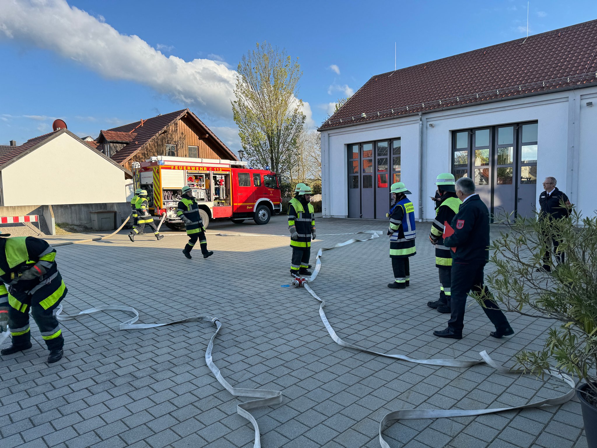 An den Abenden des 24. und 25. April 2024, konnten 26 Mitglieder der Freiwilligen Feuerwehr Jesenwang die Leistungsprüfung "Die Gruppe im Löscheinsatz" erfolgreich ablegen. Aufgeteilt in drei Gruppen, zeigten die Kameraden unter strengen blicken der Prüfer der Kreisbrandinspektion Fürstenfeldbruck ihr können.